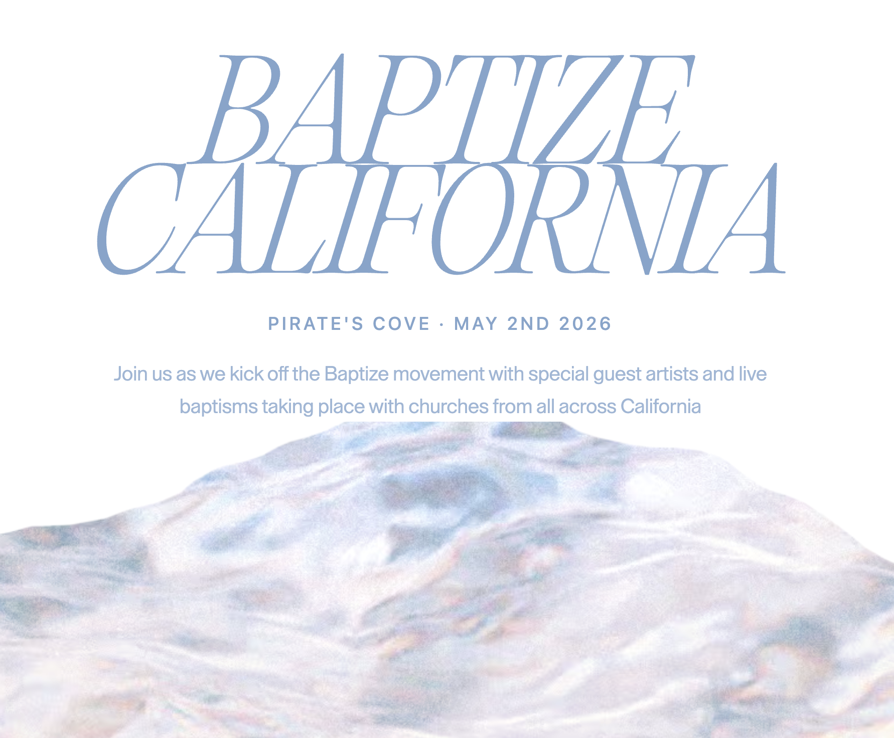 Baptize California is happening May 2nd at Pirate’s Cove in Corona Del Mar!